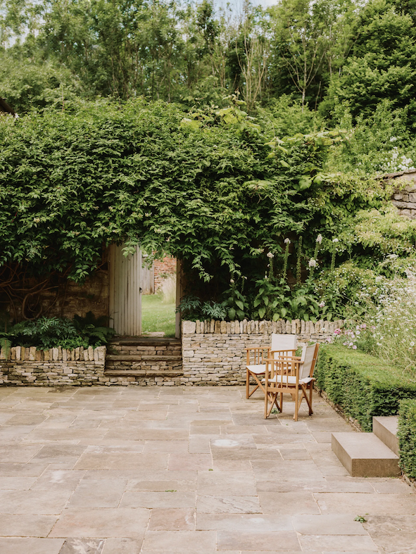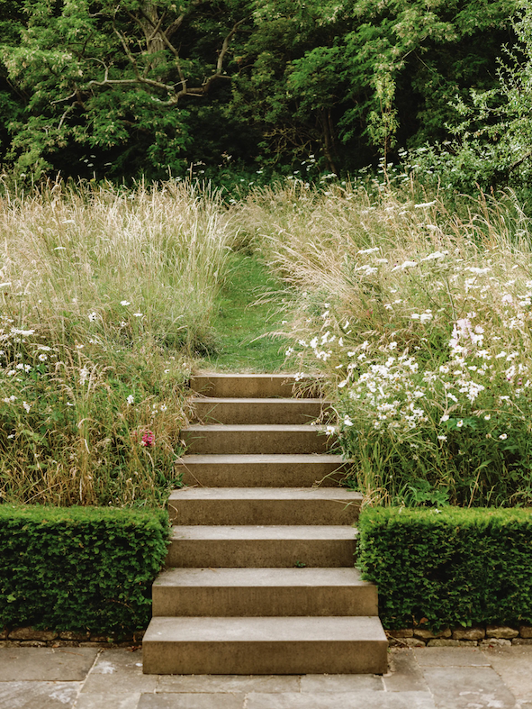 Jednak najważniejsze zmiany miały miejsce w ogrodzie. Z pomocą projektanta krajobrazu Petera Beardsleya, usunięto gęste krzaki jeżynowe, tworząc przestrzeń na łąki z dzikimi kwiatami, które teraz wiją się wokół domu na wsi. Relacja między domem a ogrodem została wzmacniona, nie ingerując przy tym w związek z gruntami rolnymi, które rozciągają się za posiadłością.