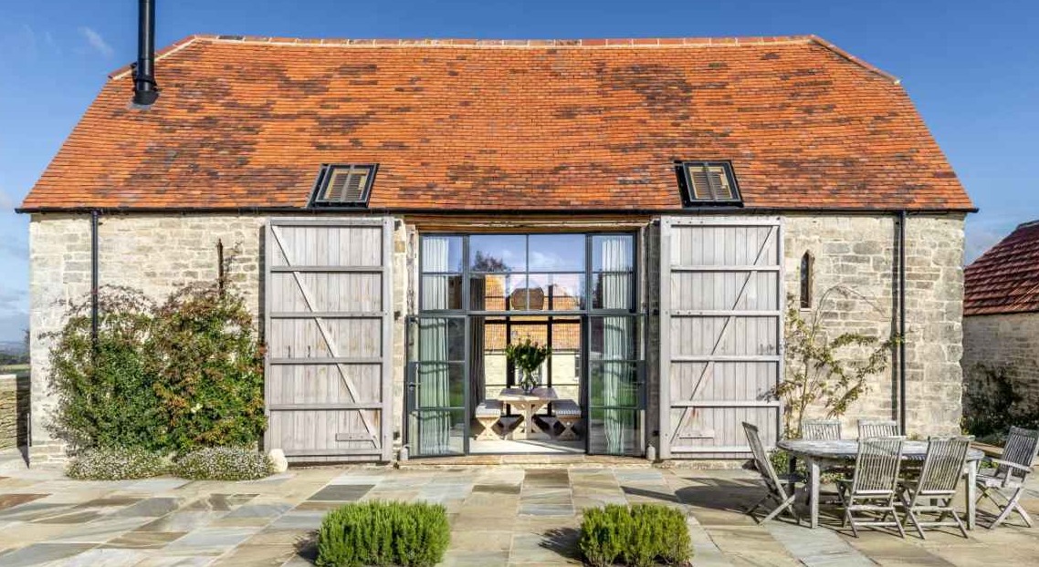 Położona na skraju malowniczej wioski Dorset, dawna stodoła omłotowa została przekształcona w wyjątkową przestrzeń mieszkalną, zachowując przy tym swój historyczny charakter. To jedna z trzech zabudowań zakupionych przez właścicieli sąsiedniego gospodarstwa, które miały służyć jako miejsce spotkań i zakwaterowania dla rodziny i przyjaciół. Początkowo budynek był częściowo zasłonięty przez prowizoryczną szopę z blachy falistej, wzniesioną dla inwentarza. Po jej usunięciu odkryto, że XVII-wieczna konstrukcja stoi na pochyłym zboczu, co wymagało podparcia i zabezpieczenia. Po renowacji, zgodnie z koncepcją pracowni Llewellyn Harker Lowe, stara stajnia zyskała nowe życie jako nowoczesna stodoła – stylowy dom z otwartym układem i dużą ilością światła.