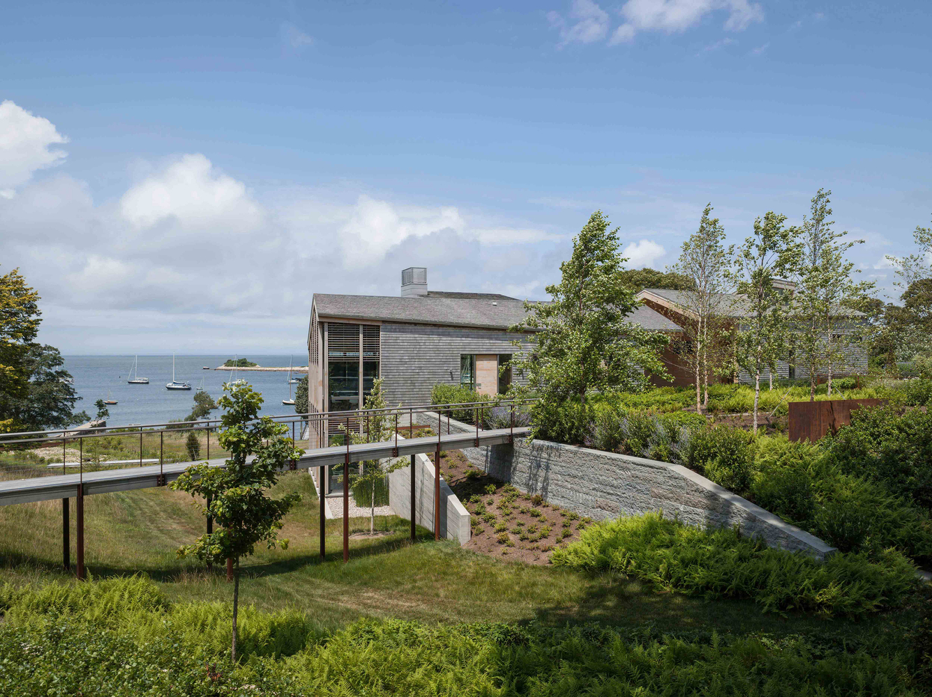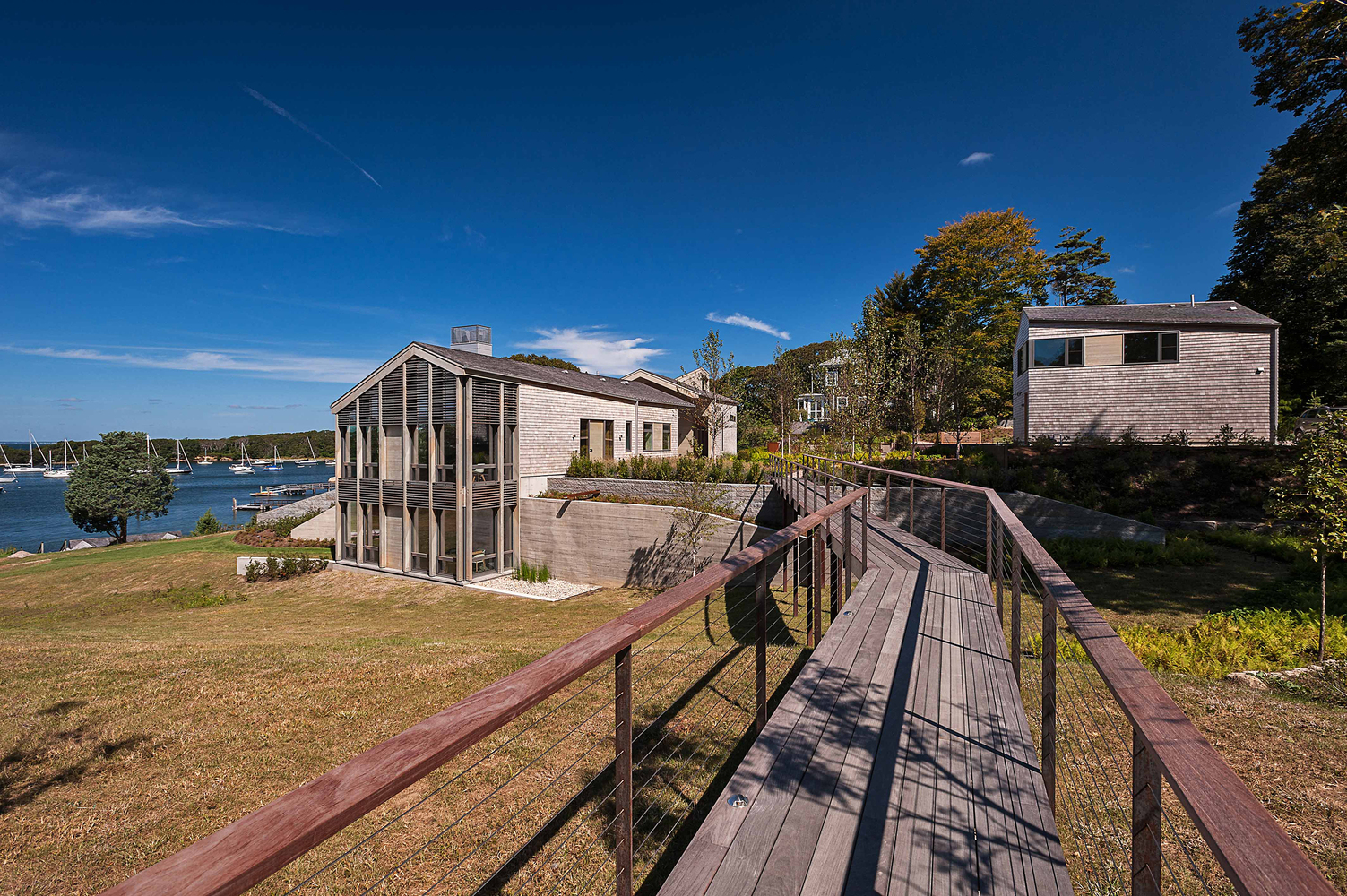 Dwie części jednego domu, zaprojektowanego przez nowojorską firmę Leroy Street Studio, tworzą ramy dla widoku na zatokę w Massachusetts. Dom o nazwie Cove House rozciąga się wzdłuż wzgórza skierowanego w stronę morza, w malowniczym nabrzeżnym miasteczku Woods Hole, oferując przepiękny widok na Winnicę Sound.