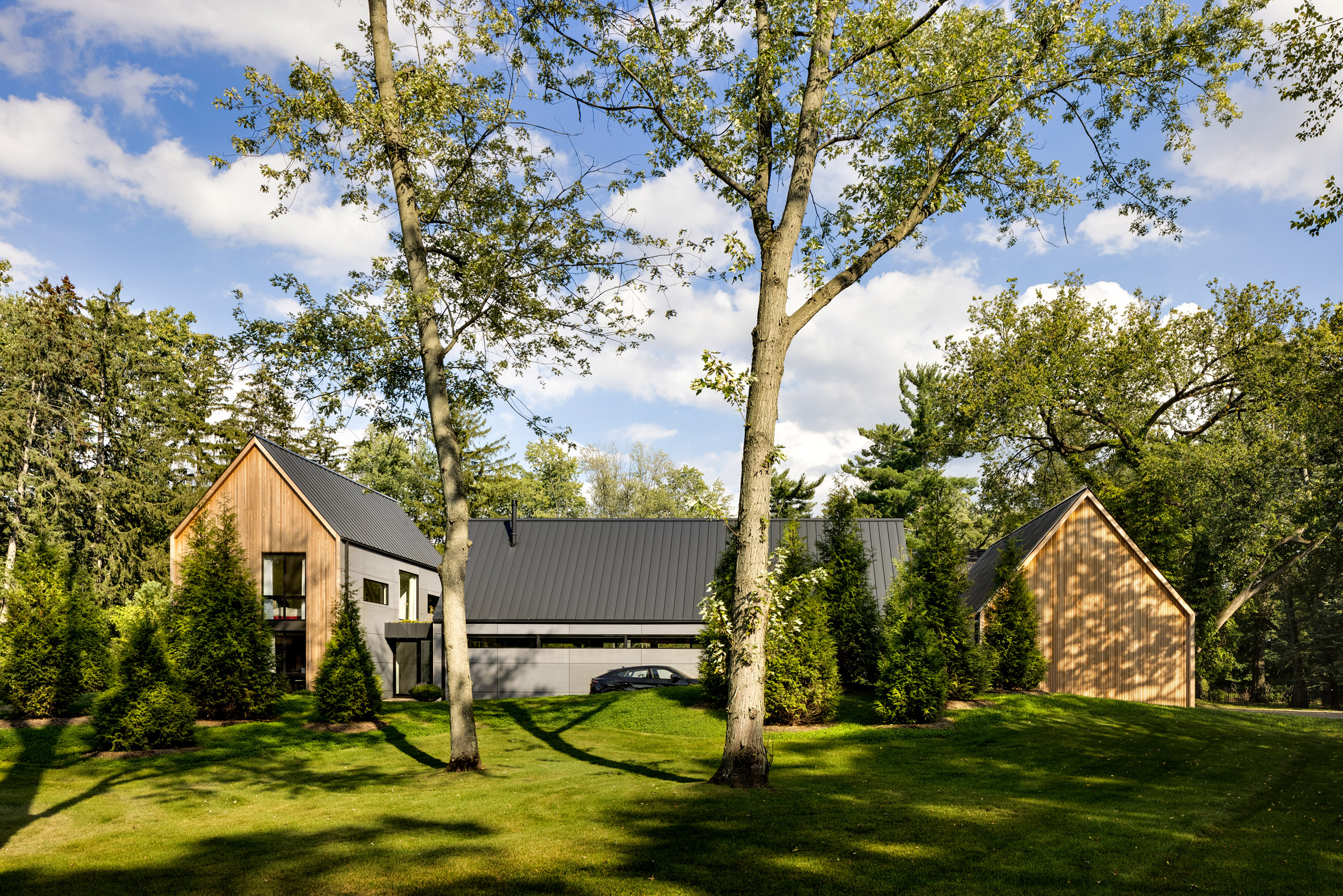 Briarcliff House to wyjątkowa nowoczesna stodoła zaprojektowana przez Iannuzzi Studio w Michigan dla rodziny pasjonującej się sztuką i teatrem. Rezydencja o powierzchni 595 m² znajduje się w Franklin, na 1,4-hektarowej posiadłości w przedmieściach Detroit, gdzie pagórkowaty teren zapewnia zarówno prywatność, jak i naturalny krajobraz. Zainspirowana klasycznymi wiejskiemi gospodarskimi domami Michigan, Briarcliff House składa się z czterech pawilonów z dwuspadowymi dachami. Budynek ma unikalną cechę ukrycia przed wzrokiem, inspirowaną powieściami o Harrym Potterze. Z zewnątrz nie widać pełnej formy budynku, a otaczający go krajobraz sprawia, że wydaje się niewidoczny.