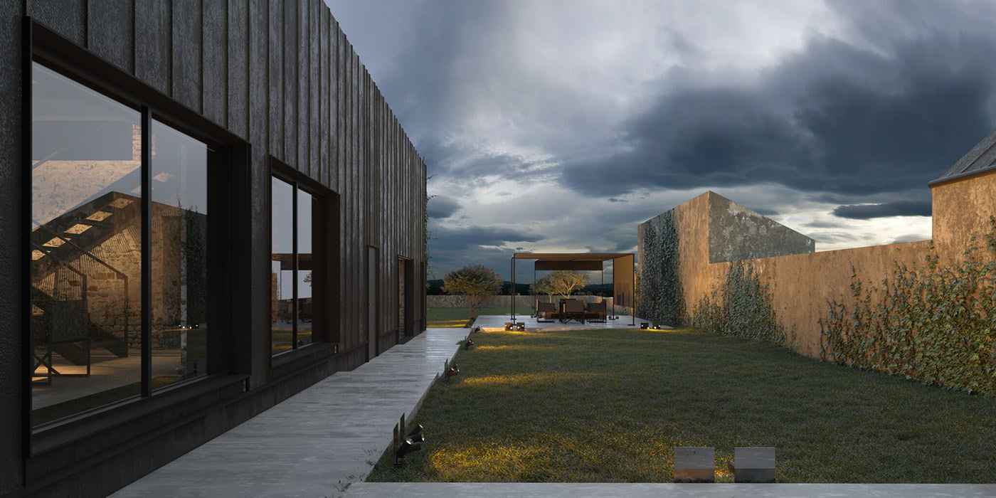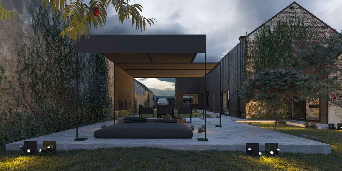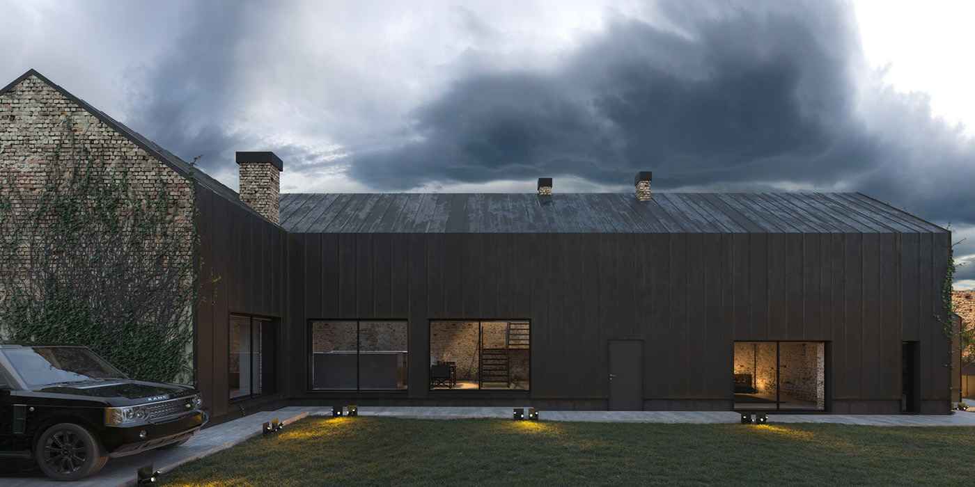 Renowacja tej starej ceglanej stodoły to prawdziwy majstersztyk, który łączy tradycyjny charakter budynku z ponadczasową estetyką współczesnej architektury. Dzięki obłożeniu elewacji blachą uzyskano wyraz minimalistycznej formy, doskonale podkreślającej unikalny klimat miejsca i nawiązującej do stylu nowoczesnej stodoły. Stara cegła w połączeniu z industrialnymi materiałami tworzy wyjątkową harmonię między historią a modernizmem.