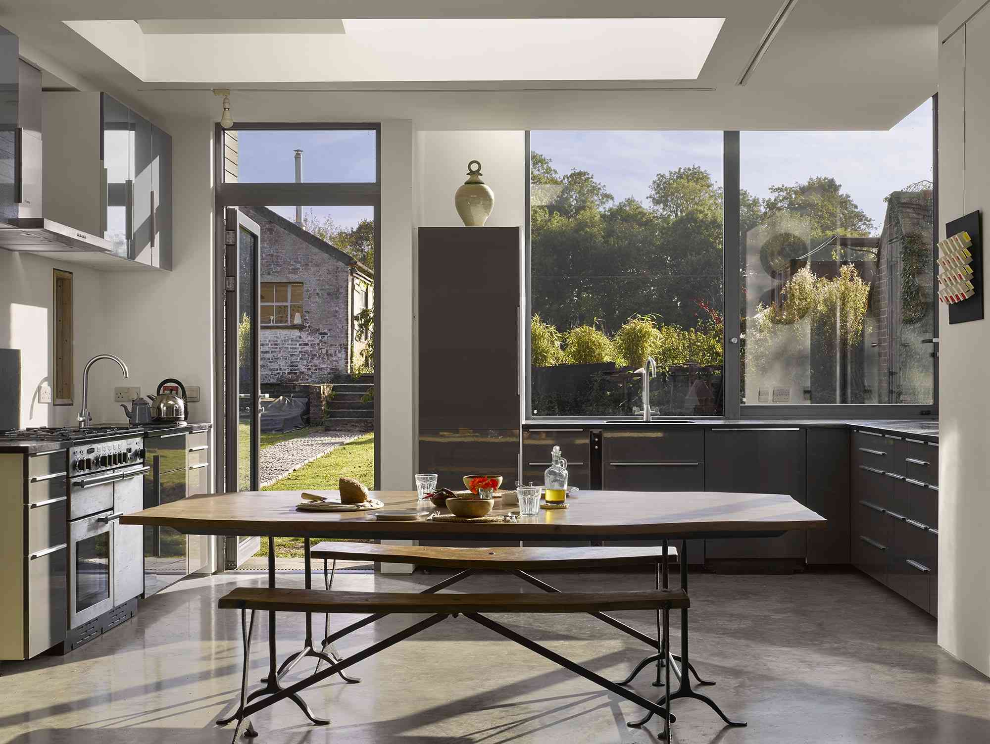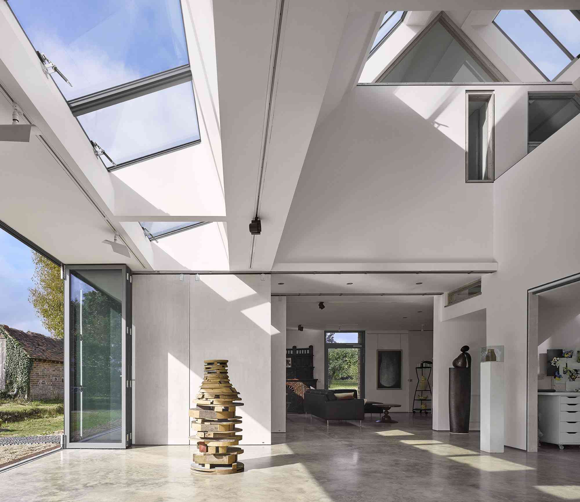 Nadrzędnym celem studia architektonicznego było stworzenie przestrzeni, która będzie jasna, ciepła i przyjazna użytkownikom. Wymagało to rozległych prac budowlanych w istniejącej stodole oraz przyległym aneksie. Architekci zdecydowali się na usunięcie pochyłych ścian po północnej i wschodniej stronie, aby uzyskać nowe, przesunięte przedłużenie po stronie południowej. Dzięki temu wnętrze zyskało spójny układ i lepszy dostęp do naturalnego światła. Celem było połączenie tradycyjnej formy budynku z nowoczesną funkcjonalnością, charakterystyczną dla projektów w stylu nowoczesnej stodoły, gdzie prostota konstrukcji spotyka się z przestronnością i lekkością.