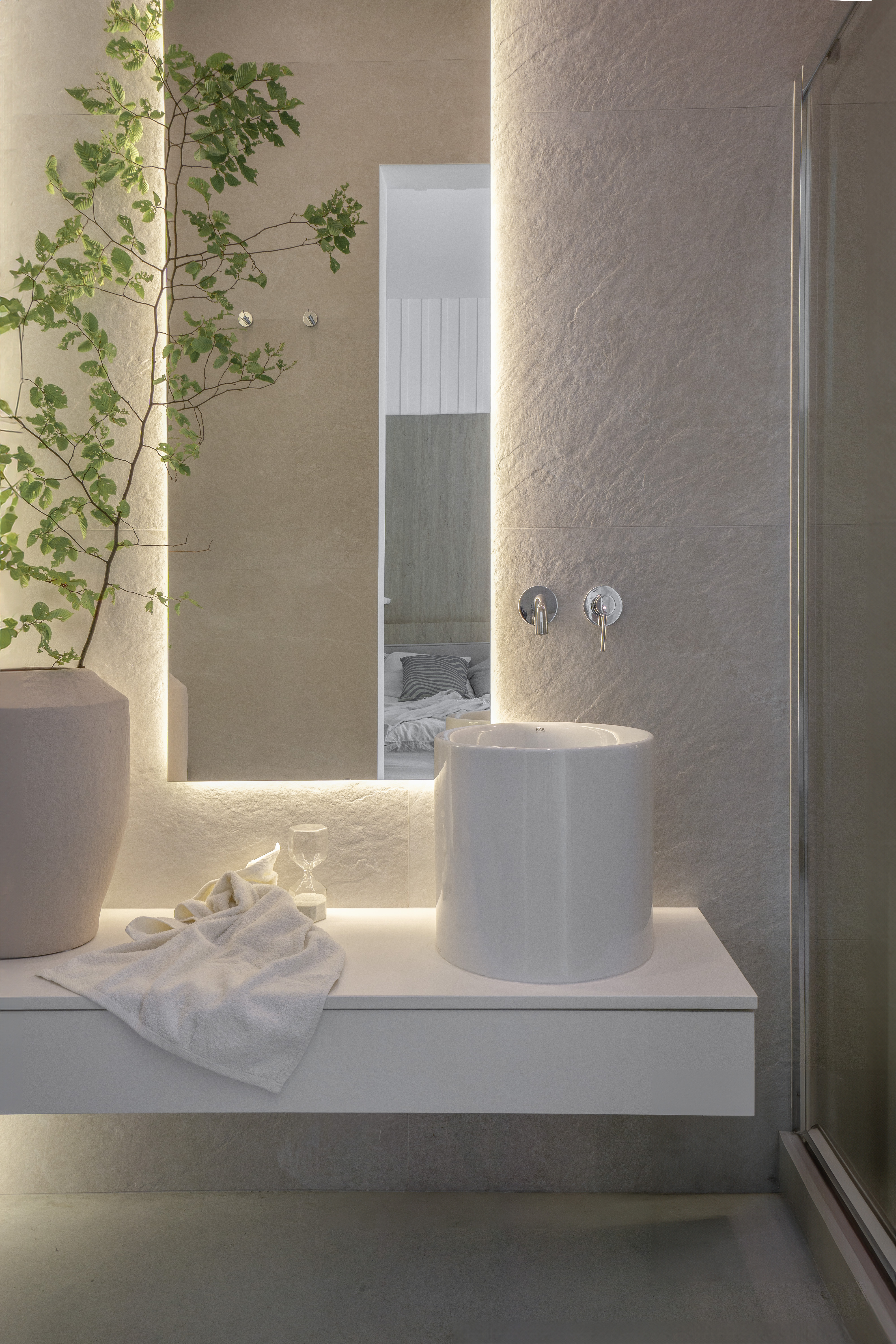 Zależało nam na zestawieniu maksymalnie strukturalnych i jednocześnie naturalnych materiałów, na których pięknie pracowałoby światło. Kluczowe dla nas było osiągnięcie nienachalnego, minimalistycznego efektu, przywołującego skojarzenia z filozofią ZEN jak i Japandi.