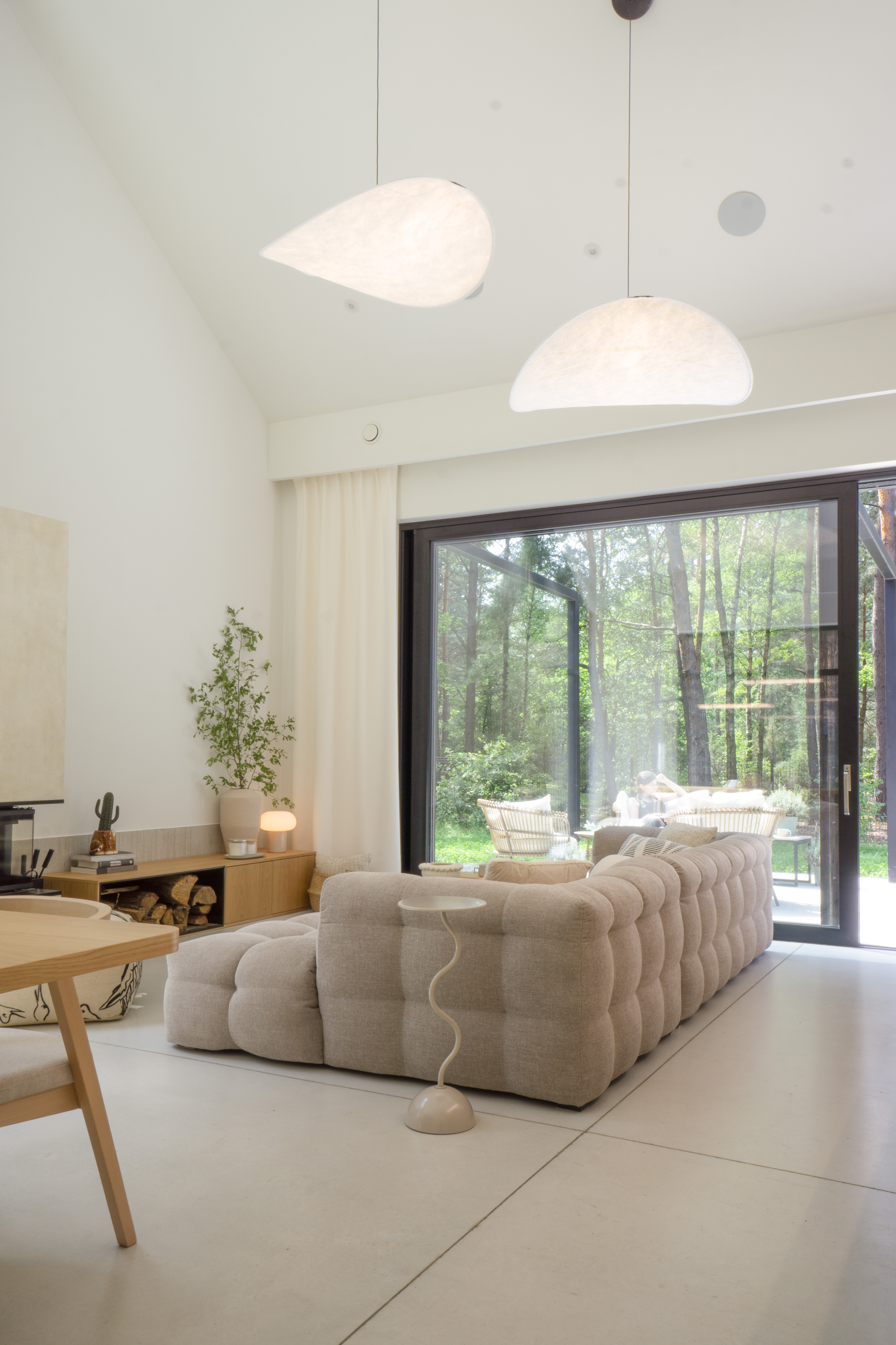 W efekcie światło stało się jednym z głównych elementów definiujących charakter tego domu. Jego dynamiczna gra – od jasnego, naturalnego światła dziennego po miękkie, ciepłe oświetlenie wieczorowe – nadaje przestrzeniom wyjątkowy klimat i sprawia, że wnętrza żyją własnym rytmem, dostosowując się do potrzeb mieszkańców. Czynnik ten wpływa nie tylko na estetykę, ale również na komfort codziennego życia w ich wymarzonym domu.