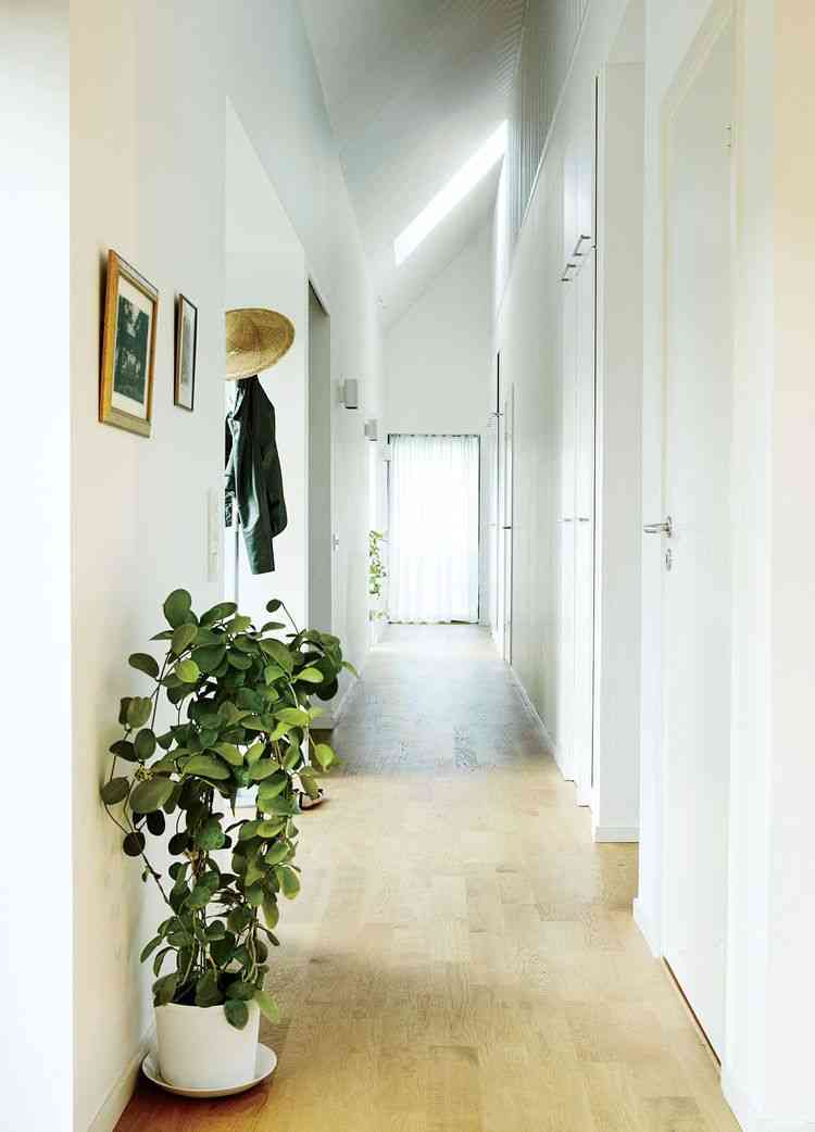 Choć dom wydaje się bardzo współczesny, jego kolorystyczna koncepcja ma korzenie w tradycji szwedzkiej architektury. Inspiracją była falu rödfärg – klasyczna czerwona farba mineralna, powszechnie stosowana do malowania drewnianych stodoł i domów wiejskich w Skandynawii. W tym przypadku do mieszanki dodano zielony pigment, tak aby fasada pasowała do paneli dachowych od firmy Plannja. Zieleń dominuje na zewnątrz, ale także przewija się we wnętrzu – jako kolor framug, drzwi, a nawet mebli, tworząc spójną i świeżą paletę barw.