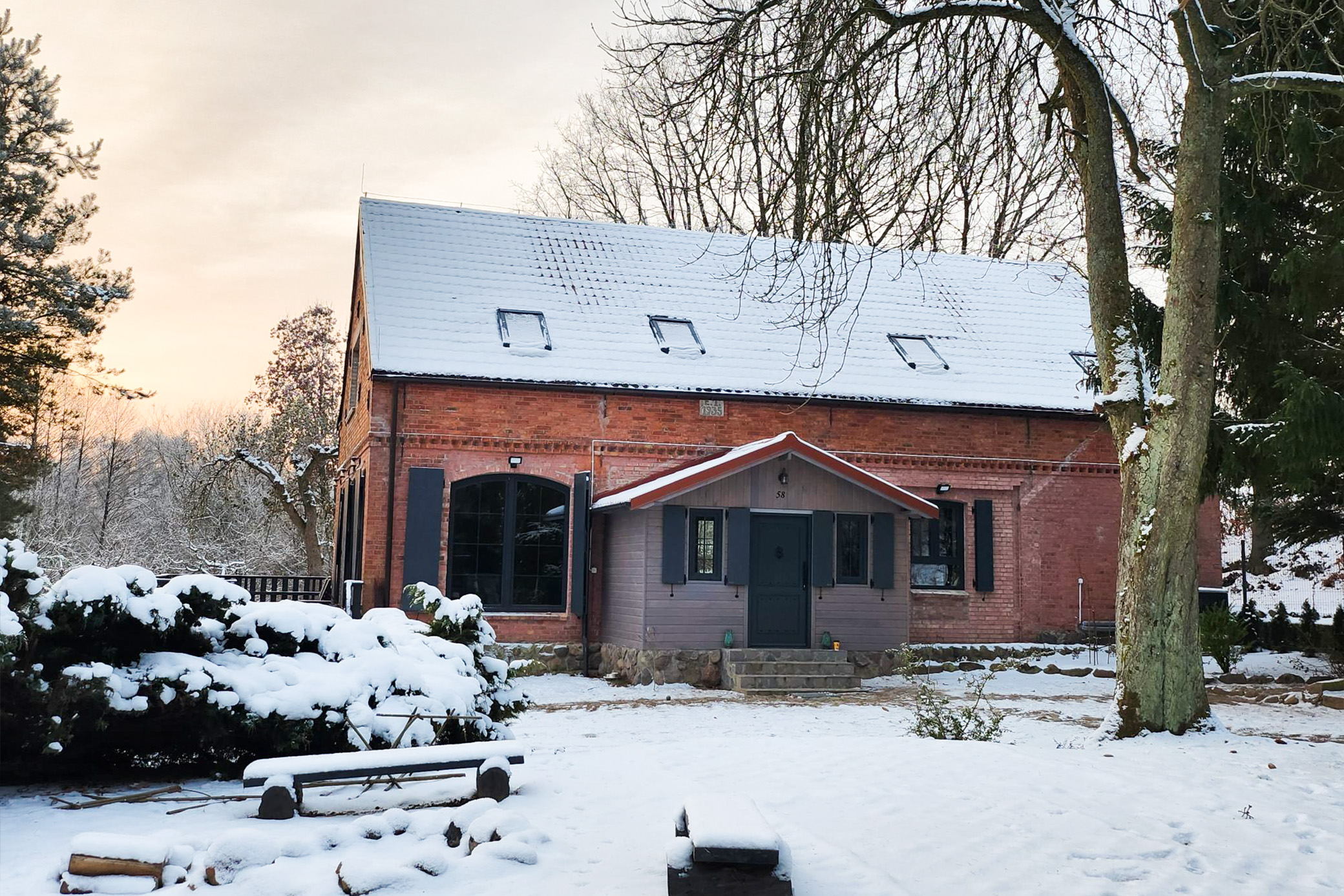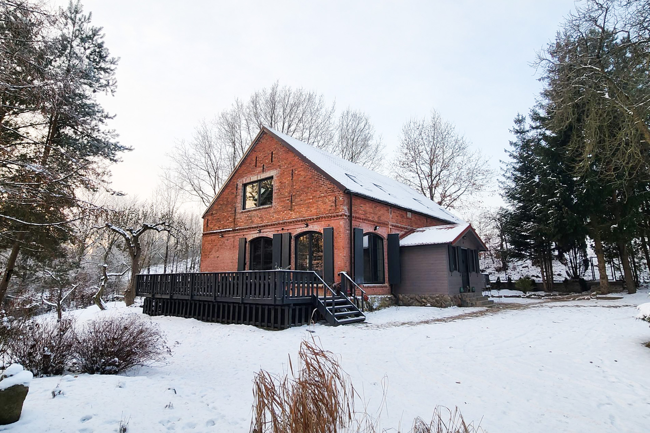 Zimą wszystko dzieje się wolniej. Dźwięki są przytłumione przez śnieg, światło miękkie, a krajobraz prosty i spokojny. Właśnie w takim rytmie funkcjonuje Czerwona Stodoła – nowoczesna stodoła nad jeziorem, która nie próbuje niczego udowadniać. Ona po prostu jest. I daje przestrzeń, by być również dla siebie. To nie jest kolejny nocleg. To nowoczesna stodoła do wynajęcia, zaprojektowana z myślą o ciszy, świetle i krajobrazie. Prosta bryła wpisana w naturę Pojezierza Drawskiego zimą wygląda niemal jak element pejzażu – spokojna, surowa, autentyczna.