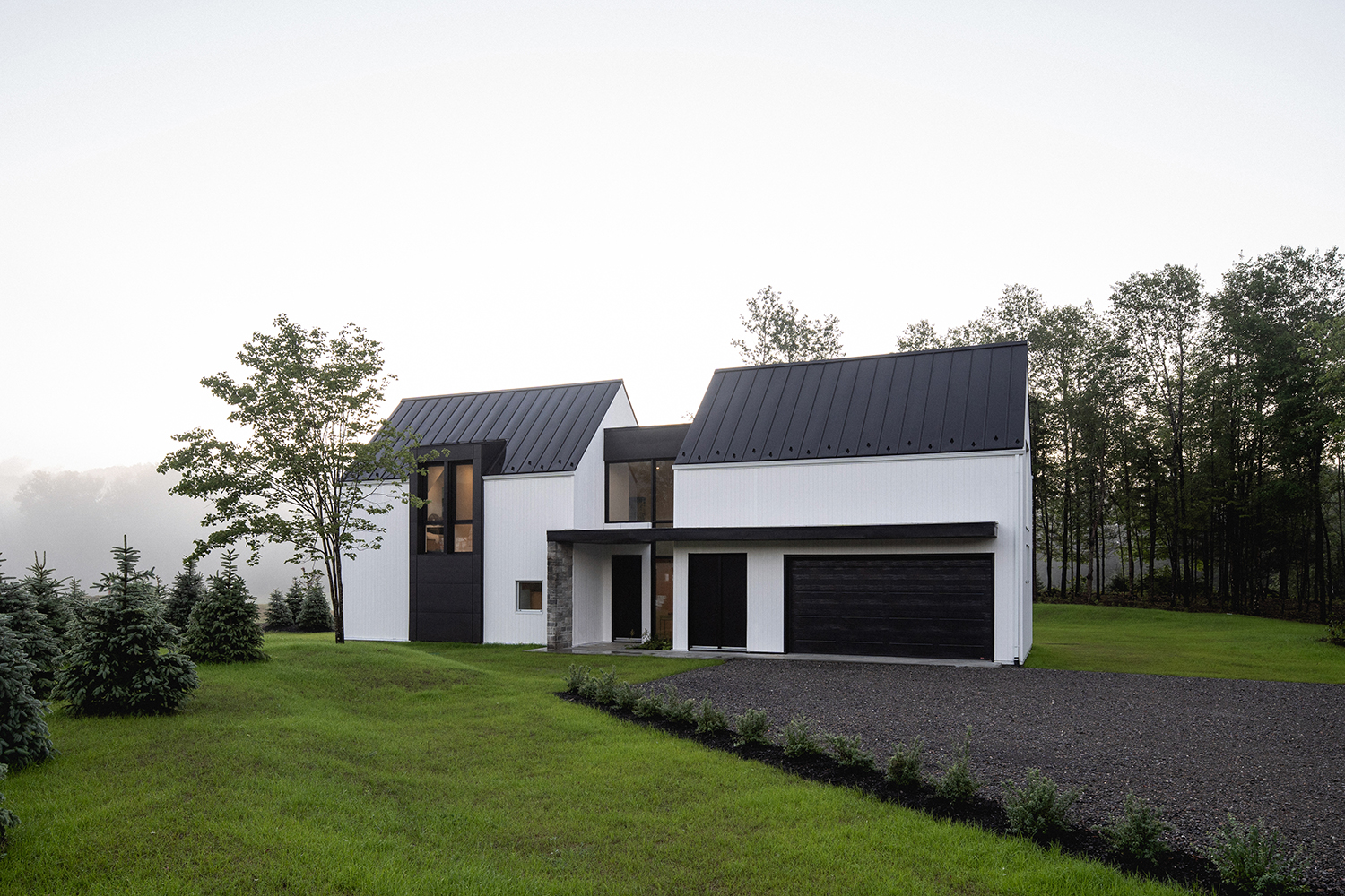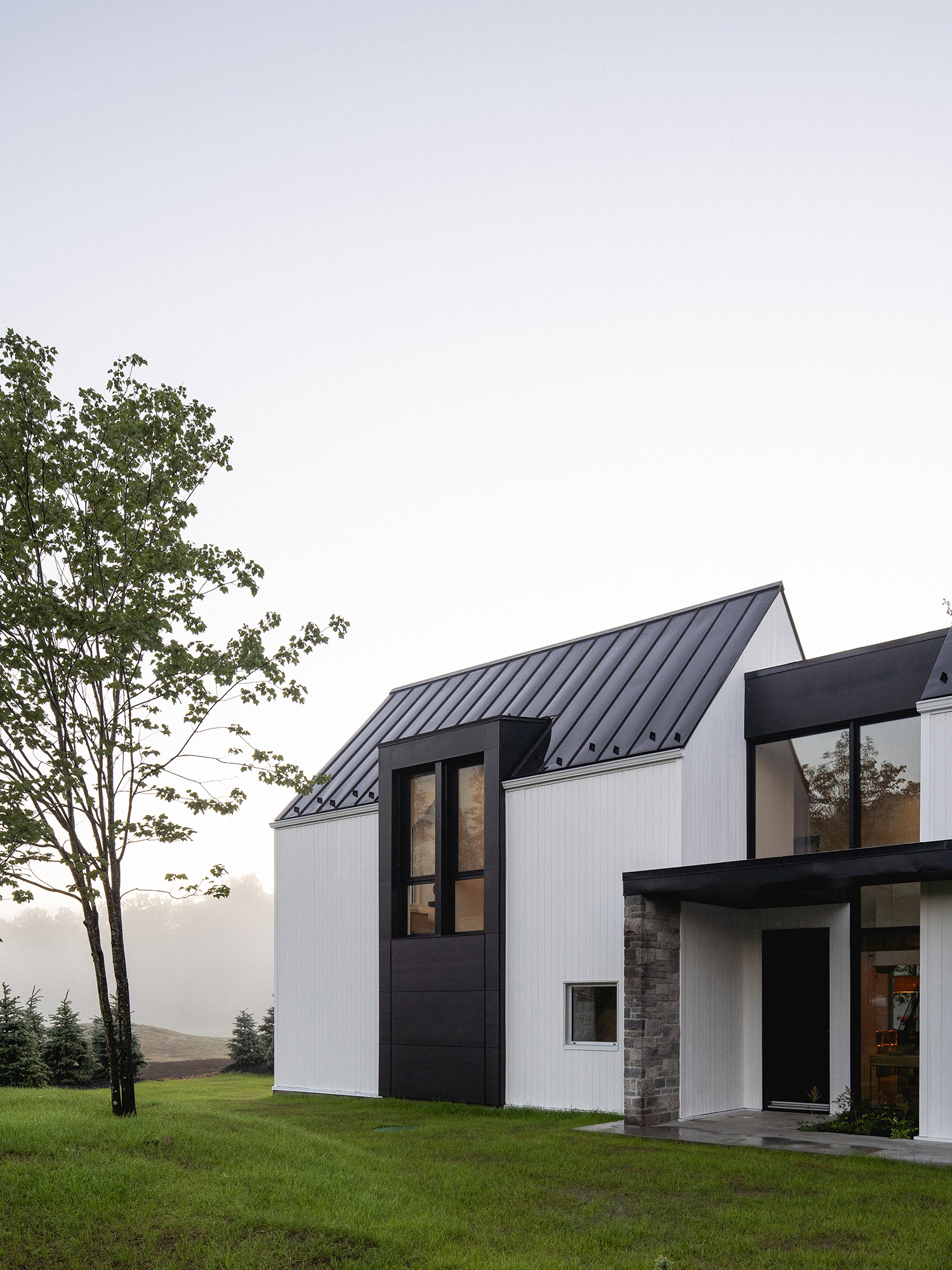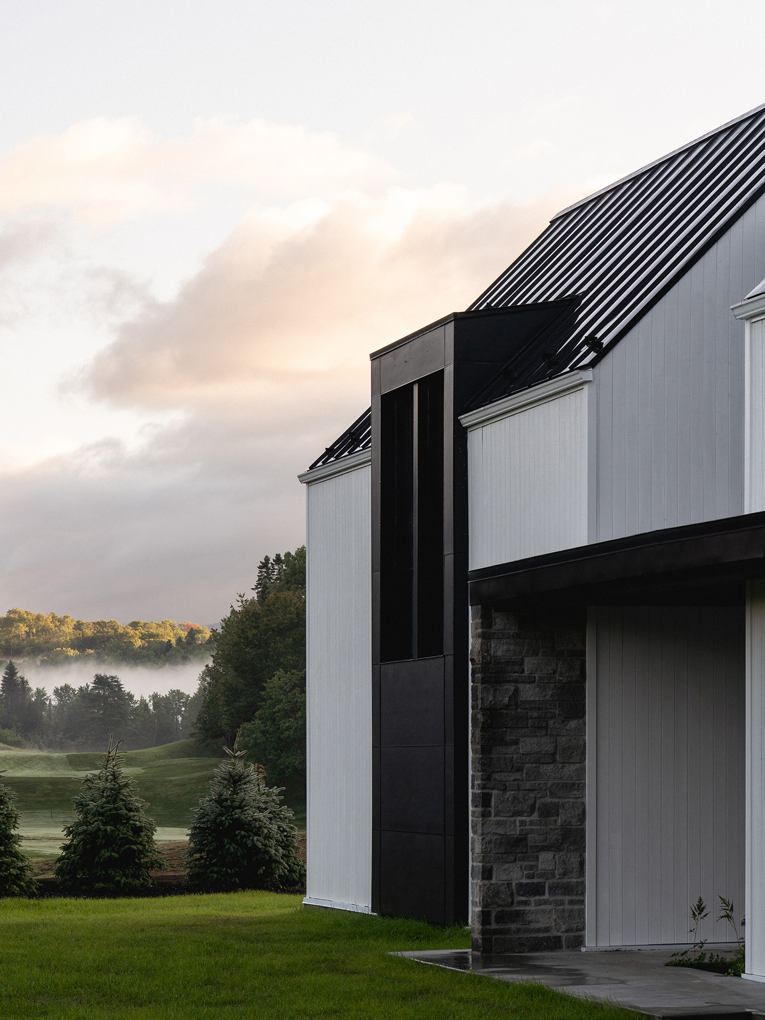 Résidence Rabaska to wyjątkowy przykład nowoczesnej stodoły, położonej malowniczo u zbiegu rzeki Diable, liniowego parku Le P’tit Train du Nord oraz 16. dołka pola golfowego La Bête w sercu Mont-Tremblant, Québec. Zlokalizowana pierwotnie w zacienionym zagajniku wysokich sosen, rezydencja musiała zostać przystosowana do nowych warunków krajobrazowych po gwałtownej burzy w 2022 roku, która zniszczyła część lasu przed zakończeniem budowy. Dziś budynek dumnie stoi na równym, otwartym terenie, oferując idealną równowagę między architekturą a naturą.