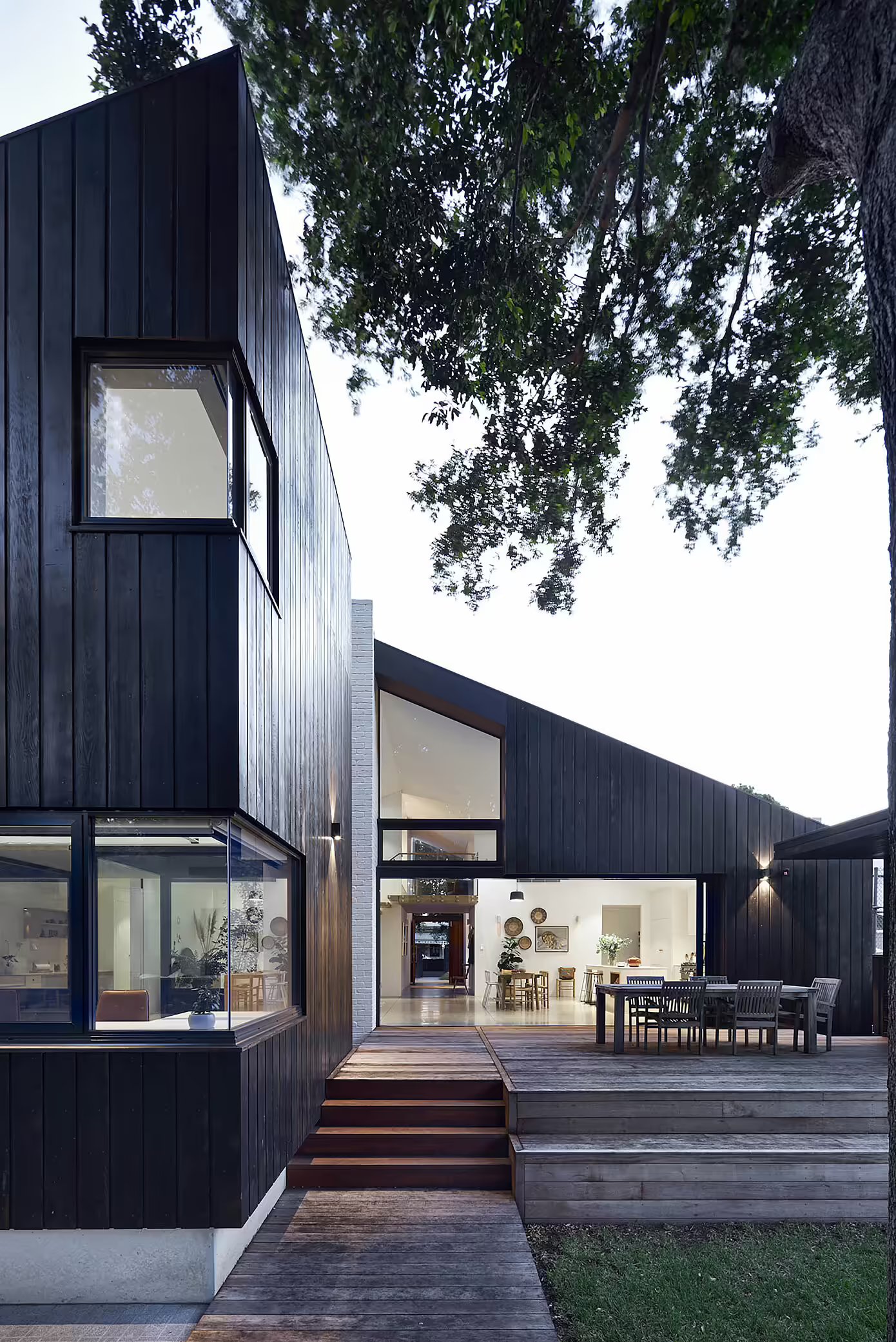 Cedar House to wyrazisty, a zarazem funkcjonalny dom rodzinny, zaprojektowany przez JPE Design Studio w Unley Park (Australia) dla powiększającej się rodziny. Projekt łączy geometryczną bryłę, zwęgloną elewację z drewna cedrowego, beton, tynk i białą cegłę, tworząc spójną i ponadczasową kompozycję. Dom mieści 4 sypialnie, gabinet, antresolę z czytelnią, dużą kuchnię z salonem, piwnicę, garaż podziemny i taras z basenem. Centralny, otwarty korytarz przebiega przez całą działkę, od wejścia aż po platformę do nurkowania, stanowiąc oś organizującą przestrzeń.