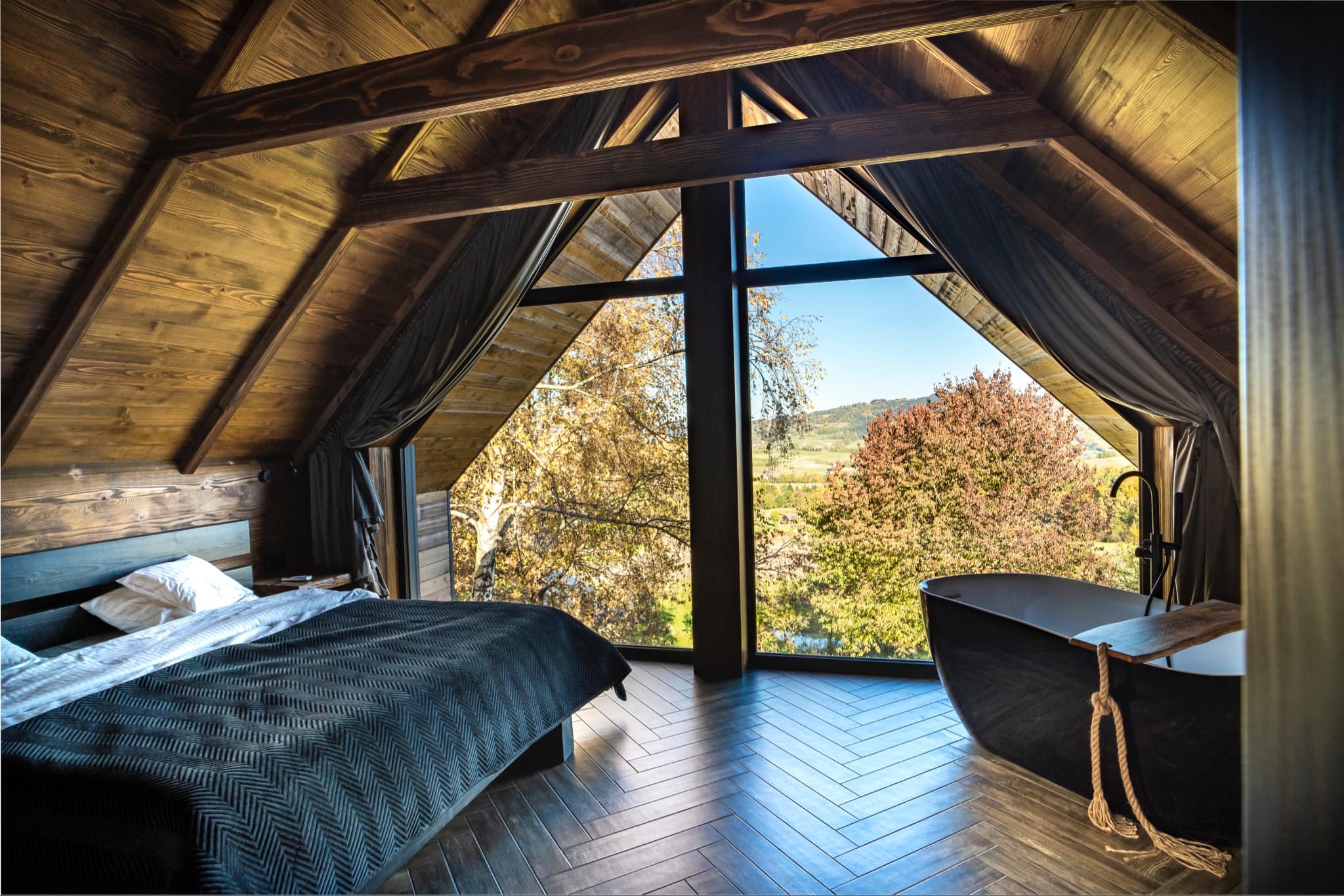 Dodatkowym atutem jest wanna w sypialni, z cudownym widokiem, idealna na relaks po aktywnym dniu.