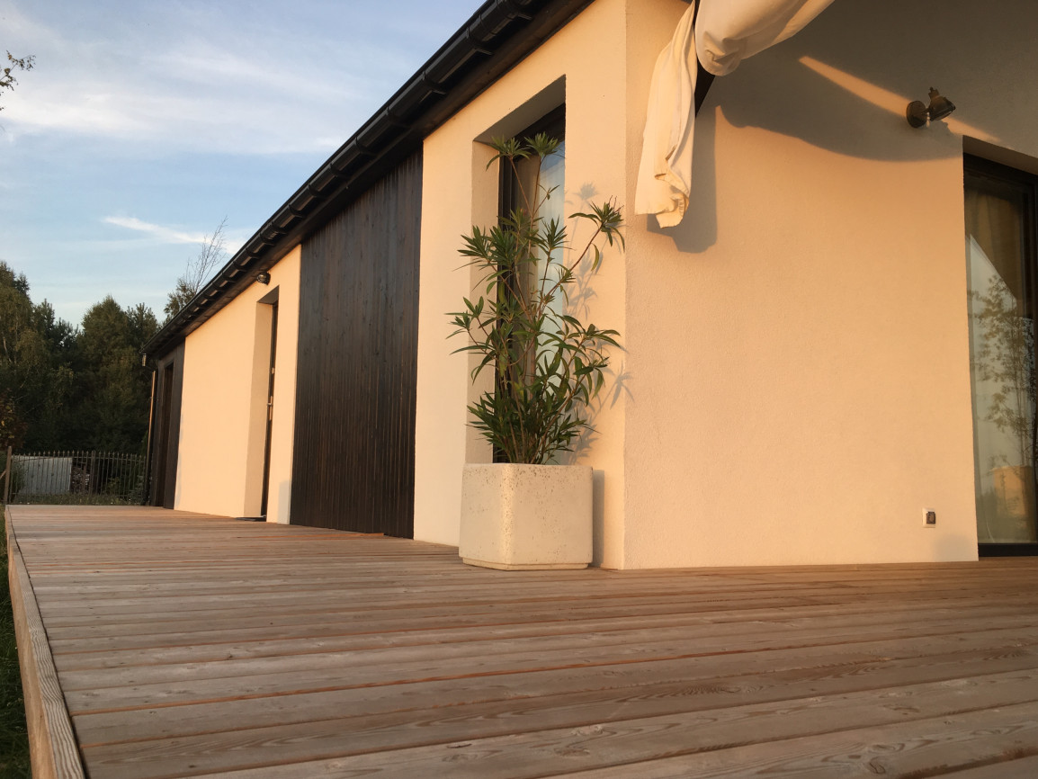 Oferujemy również profesjonalne wykonawstwo elewacji wentylowanych, estetycznych i trwałych drewnianych tarasów, a także produkcję i montaż prefabrykowanych wiązarów dachowych, które zapewniają stabilność i bezpieczeństwo konstrukcji.